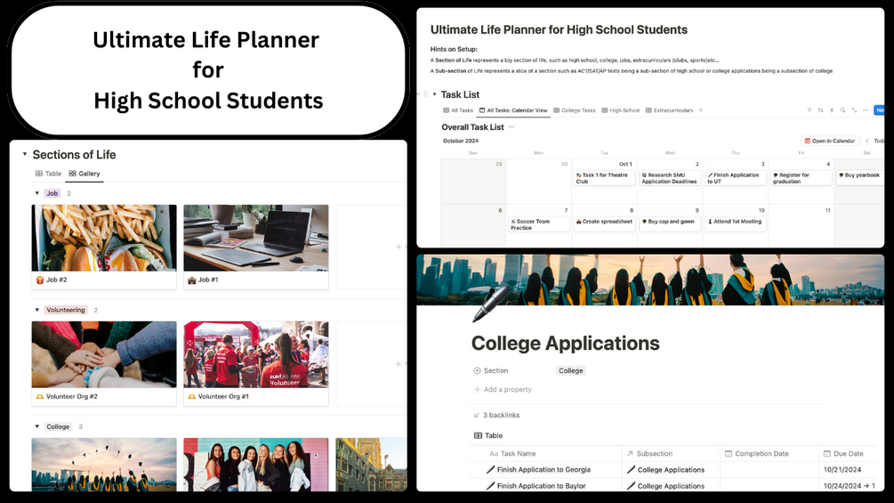 A Notion template helps high school students stay organized and keep track of all of their tasks.